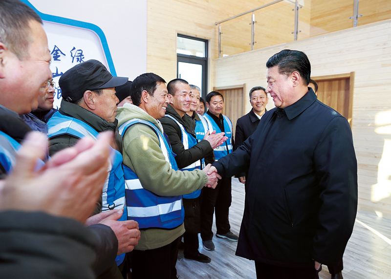 2019年1月16日至18日,中共中央总书记、国家主席、中央军委主席习近平在京津冀考察,主持召开京津冀协同发展座谈会并发表重要讲话。这是1月16日下午,习近平在河北雄安新区“千年秀林”大清河片林一区造林区域秀林驿站,同参与造林护林的村民亲切握手新华社记者鞠鹏/摄